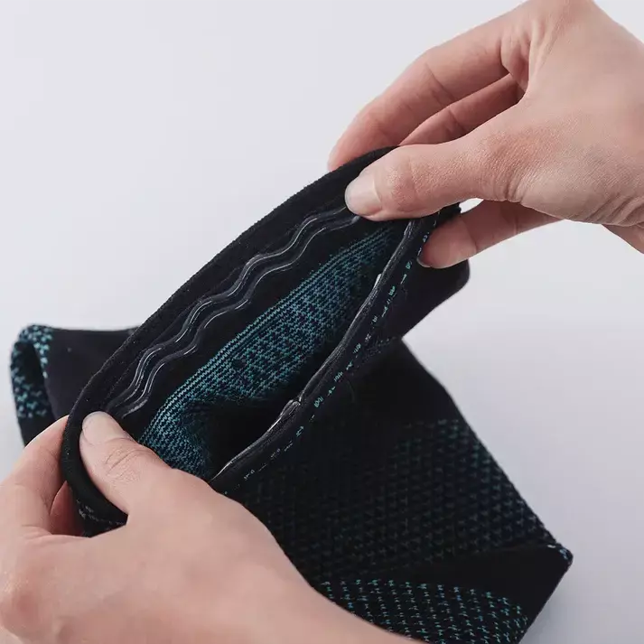 As hastes bilaterais oferecem reforço lateral para maior firmeza, e o silicone antiderrapante interno evita que a joelheira escorregue durante atividades físicas ou no dia a dia.